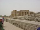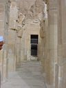 This temple is in an extraordinary position, set in a semicircle of tall bare rocky cliffs. We approached from directly in front, on foot, walking as usual through bare desert. The first picture (5) gives quite a good impression of it. Image 6 was taken of some people in the distance descending through the barren hills.